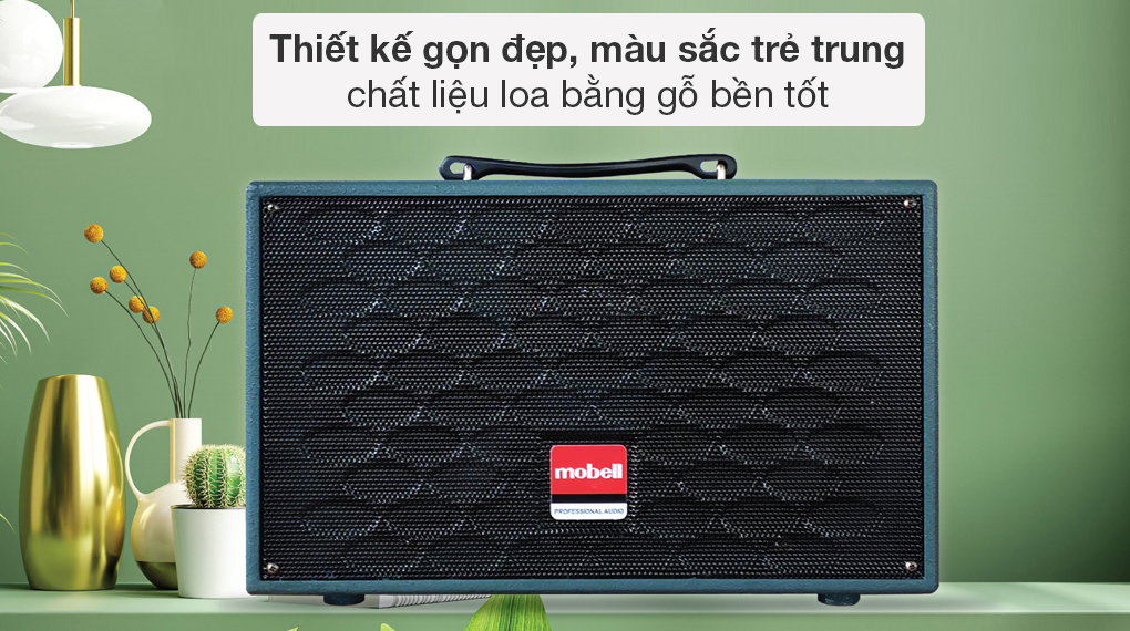 - Mobell MK-4020 được thiết kế hình hộp chữ nhật nằm ngang với gam màu xanh ngọc trẻ trung, nhã nhặn. Phía trên thân loa còn được thiết kế thêm tay cầm, hỗ trợ cho việc di chuyển thiết bị trở nên thuận tiện hơn.
