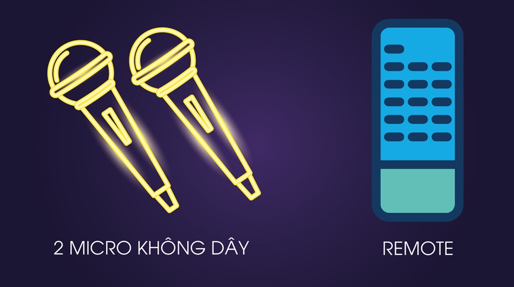 Sản phẩm được trang bị 2 micro chuyên dụng và remote giúp điều khiển từ xa các chức năng loa một cách thuận tiện.