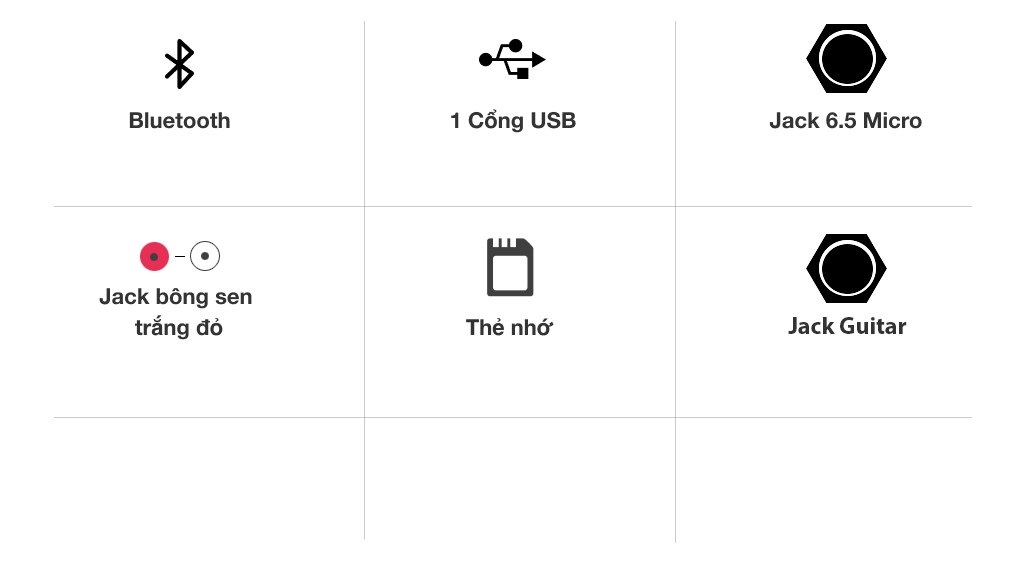 Ngoài chức năng kết nối không dây qua bluetooth, loa karaoke Mobell MK-5070 còn được trang bị thêm các cổng kết nối khác như cổng Guitar, jack Micro 6.5 mm, jack bông sen trắng đỏ, thẻ nhớ và cổng USB, thuận tiện cho việc truyền tải dữ liệu và xuất âm thanh.