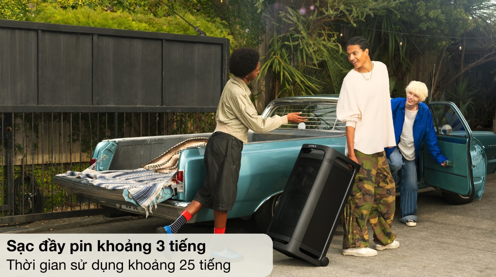 Pin của chiếc loa này cung cấp thời gian hoạt động có thể lên đến khoảng 25 tiếng, đáp ứng trọn vẹn nhu cầu giải trí kéo dài cả ngày mà không cần lo sạc giữa chừng.
