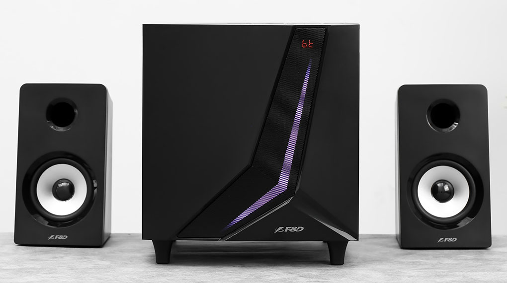 Phần vỏ của loa Fenda được làm từ nhựa cao cấp, bề mặt hơi nhám nên khi mình chạm tay vào cũng không để lại dấu vân tay. Khi loa bị bám bụi thì mình chỉ cần dùng khăn lau sơ qua là đã sạch, đẹp như ban đầu. Mặt trước của phần loa Sub có những đường cắt vô cùng cá tính, kết hợp cùng đèn LED RGB tạo nên một ngoại hình nổi bật.