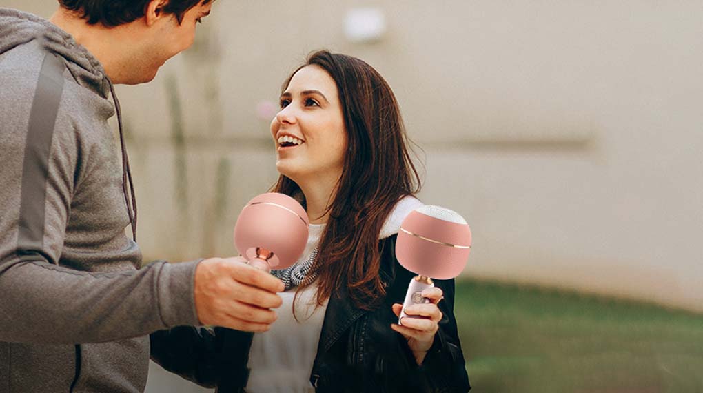 Mẫu micro này gây ấn tượng với kiểu dáng hình nấm, có tông màu đen thanh lịch và màu hồng ngọt ngào đi kèm nhiều chi tiết được làm bóng bẩy tạo điểm nhấn cho thiết kế thêm cá tính, đẹp mắt. Sản phẩm thiết kế không dây, dễ dàng cho bạn thao tác, di chuyển và bảo quản.