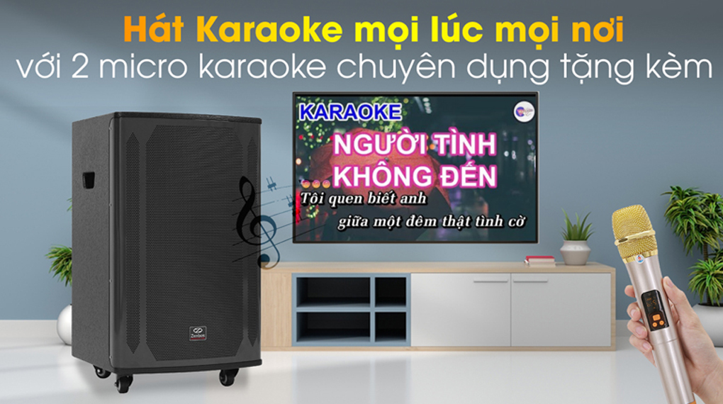 Bên cạnh đó, sản phẩm còn được tặng kèm 2 micro không dây chuyên dụng, có thể hát karaoke bất kì khi nào.