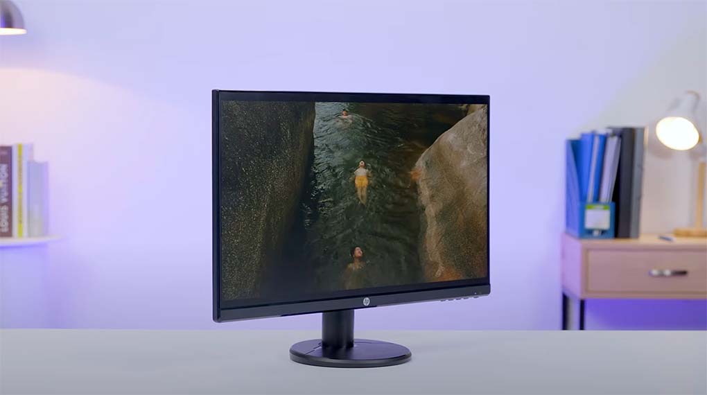 Màn hình HP được hoàn thiện với ngôn ngữ thiết kế đơn giản, nếu nhìn từ mặt bên ngoài thì sẽ không có quá nhiều điểm thu hút mắt mình. Tuy nhiên, một điểm mình khá thích ở những mẫu thiết kế LCD bây giờ chính là sở hữu một khung viền khá mỏng, tạo cảm giác liền mạch, không chỉ cho mắt người dùng mà còn là về tính thẩm mỹ của không gian, khi ghép chung với cùng lúc nhiều thiết bị khác thì sẽ làm việc rất thoải mái.