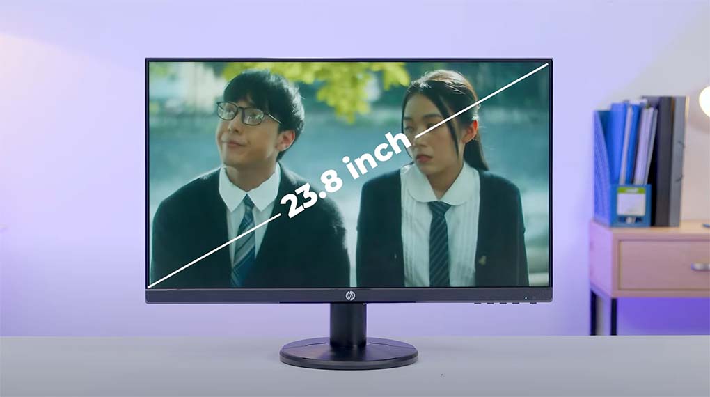 Màn hình phẳng kích thước 23.8 inch kết hợp với độ mỏng của khung viền xung quanh, cho mình cảm nhận về thị giác khá tốt khi làm việc hay giải trí. Độ phân giải Full HD (1920 x 1080) cho nội dung được thể hiện sắc nét với màu sắc tươi tắn, tính tương phản tốt cùng tông màu đen được hiển thị sâu nên các trải nghiệm trở nên thú vị hơn hẳn.