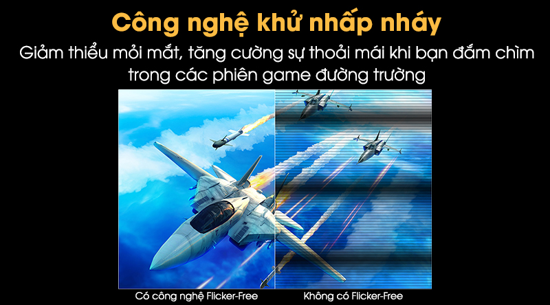 Công nghệ Flicker - Free giảm thiểu mỏi mắt bằng cách giảm nhấp nháy, tăng sự thoải mái khi tập trung nhìn lâu vào các game đường trường.