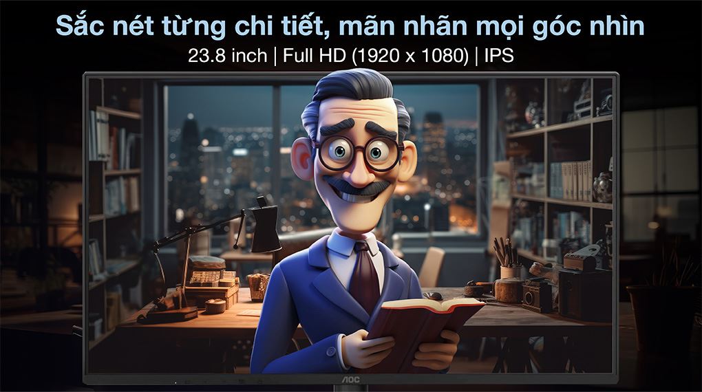 Với kích thước 23.8 inch, chiếc màn hình này mang đến sự cân bằng hoàn hảo, không quá chiếm diện tích nhưng vẫn đủ rộng rãi cho mọi nhu cầu từ công việc đến giải trí. Độ phân giải Full HD (1920 x 1080) đảm bảo mọi hình ảnh và văn bản đều được hiển thị sắc nét, sống động. Đặc biệt, nhờ sử dụng tấm nền IPS, bạn có thể thoải mái xem phim hay làm việc nhóm mà không lo nội dung bị mờ hay biến đổi màu sắc, vì công nghệ này mang lại góc nhìn siêu rộng, giữ trọn vẹn chất lượng hình ảnh từ mọi góc độ.