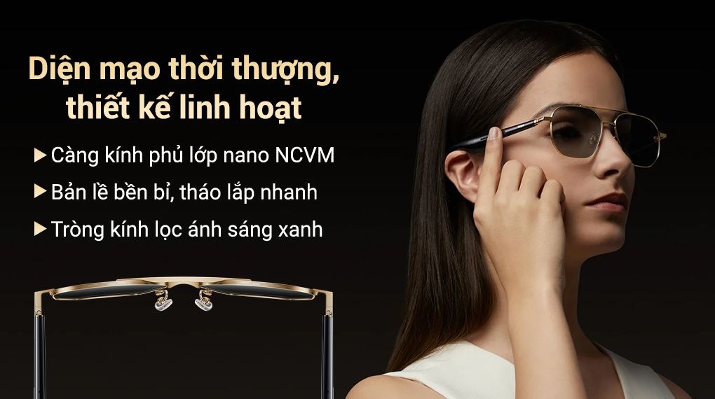Mắt kính Xiaomi gây ấn tượng mạnh với cấu trúc càng kính siêu mỏng, trong đó phần mỏng nhất chỉ 5 mm, tạo nên tổng thể thon gọn và tinh tế. Bề mặt khung kính được hoàn thiện bằng lớp phủ nano mạ chân không không dẫn điện (NCVM), tạo hiệu ứng ánh kim sang trọng và làm nổi bật logo Xiaomi màu bạc.