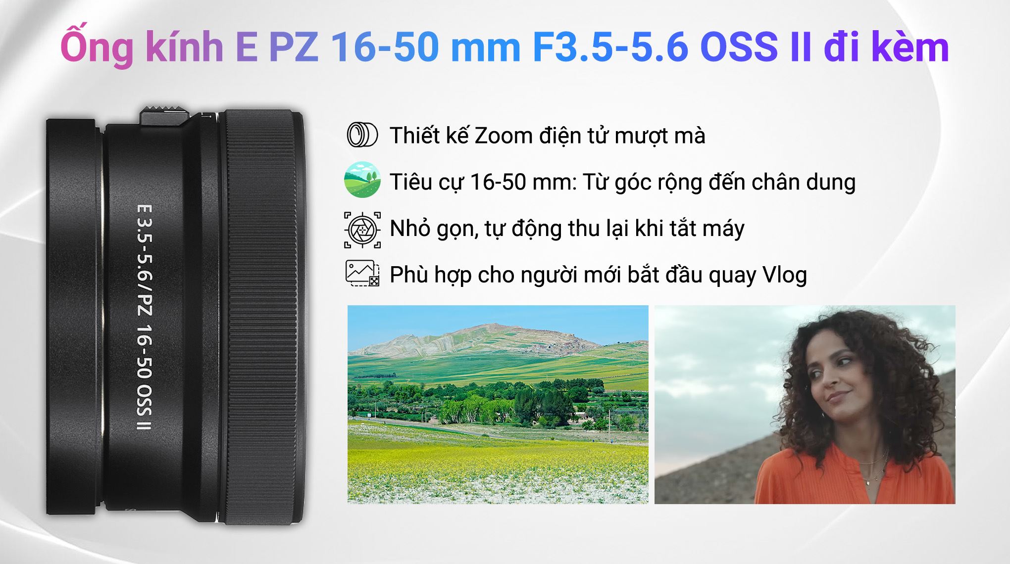 Đi kèm theo bộ máy là ống kính E PZ 16-50 mm F3.5-5.6 OSS II, một sự lựa chọn lý tưởng cho những người bắt đầu bước chân vào con đường sáng tạo nội dung số.