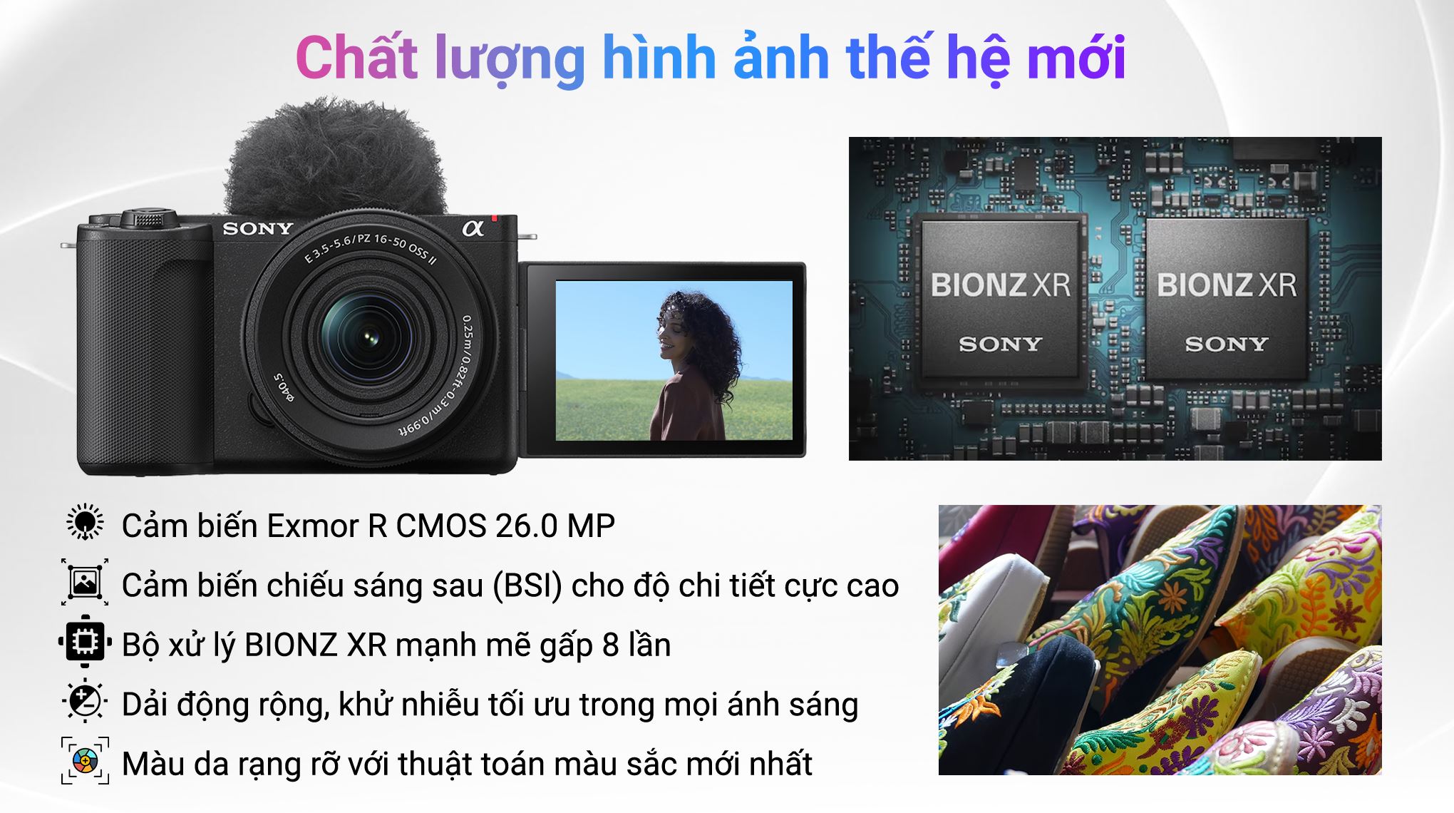 Sự đột phá của Sony ZV-E10 II bắt nguồn từ cảm biến Exmor R CMOS 26.0 MP thế hệ mới, được thiết kế theo cấu trúc chiếu sáng sau giúp tối ưu hóa lượng ánh sáng thu nhận trên mỗi pixel.