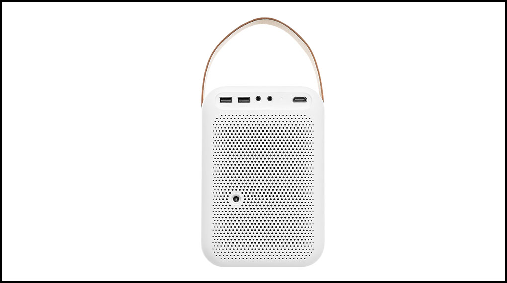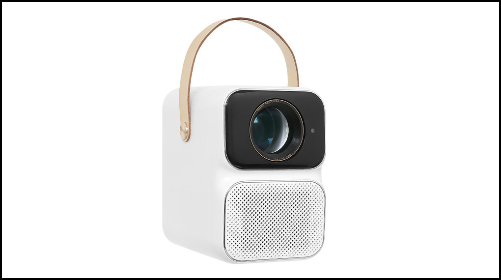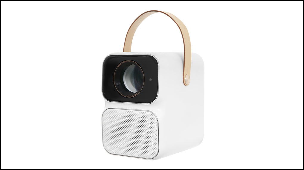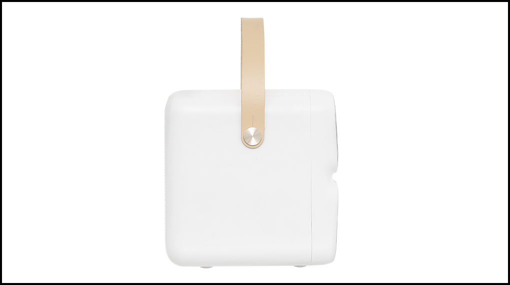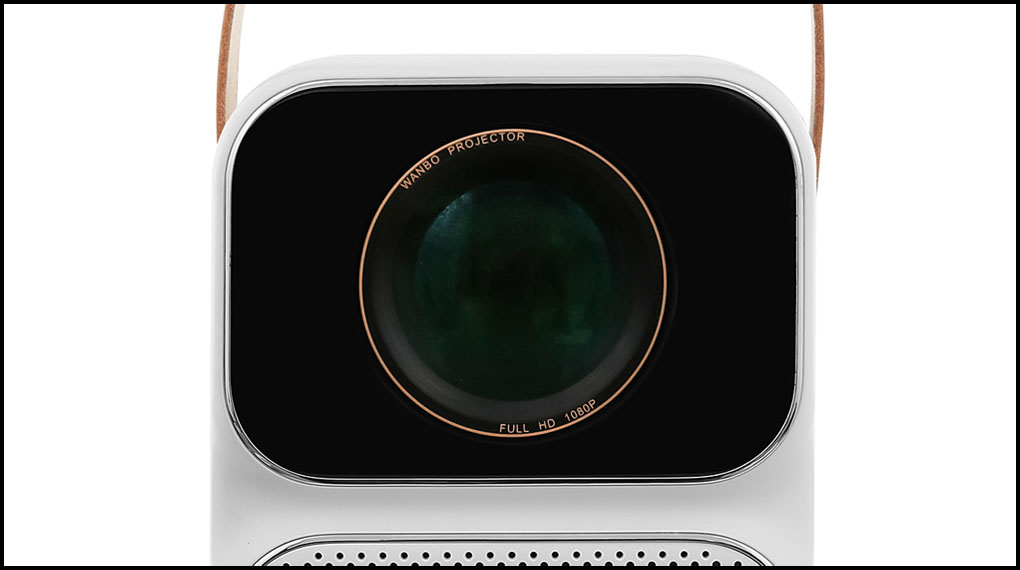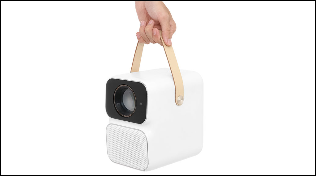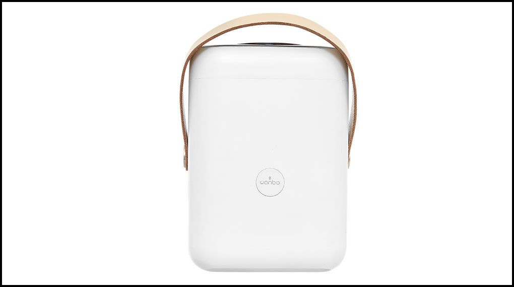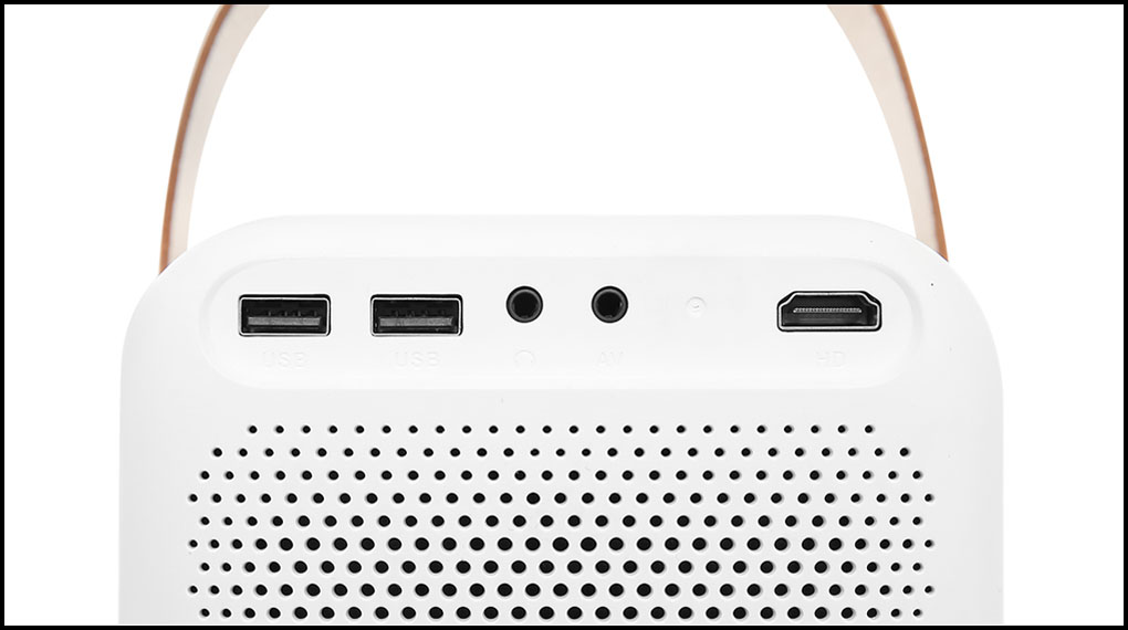 Wanbo T6 Max được gắn sẵn tay cầm bằng da trông thời thượng và mới lạ. Trọng lượng máy 1.9 kg vừa phải, đủ để có thể mang theo bên cạnh như đi du lịch hay tụ tập với đám bạn để cùng xem phim, bóng đá. Tuy nhiên, mình thấy do sản phẩm có độ dày 20.1 cm nên nó sẽ tốn một ít diện tích khi bỏ vào balo hay vali.