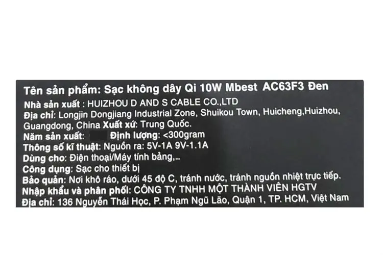 Thông số kỹ thuật Đế sạc không dây Qi 10W Mbest AC63F3