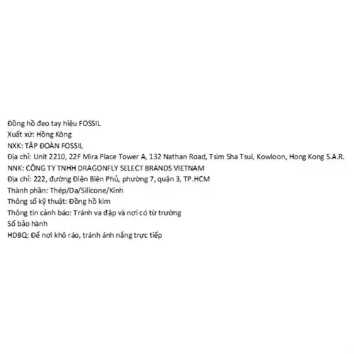 - Fossil là một tập đoàn chuyên sản xuất và thiết kế đồng hồ, phụ kiện thời trang, trang sức. Cơ sở sản xuất của đồng hồ Fossil được đặt tại châu Á và Thụy Sĩ, các trung tâm phân phối tại Dallas, Đức, và châu Á với hơn 400 nhà bán lẻ, 4.000 điểm mua hàng và 13.000 nhân viên trên toàn thế giới.
