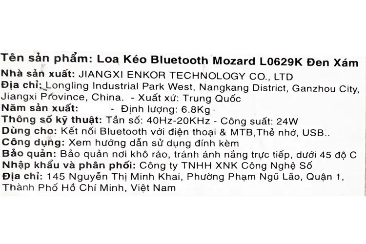 Thông số kỹ thuật Loa Kéo Bluetooth Mozard L0629K Đen Xám