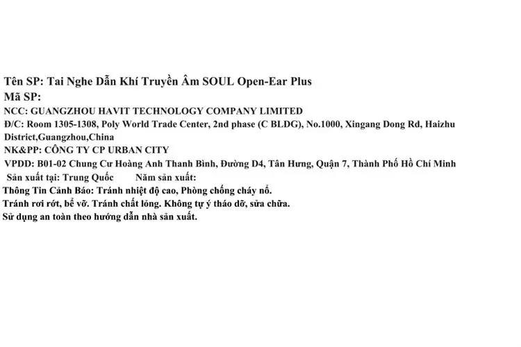 Thông số kỹ thuật Tai nghe Bluetooth dẫn khí truyền âm Soul Open-Ear Plus