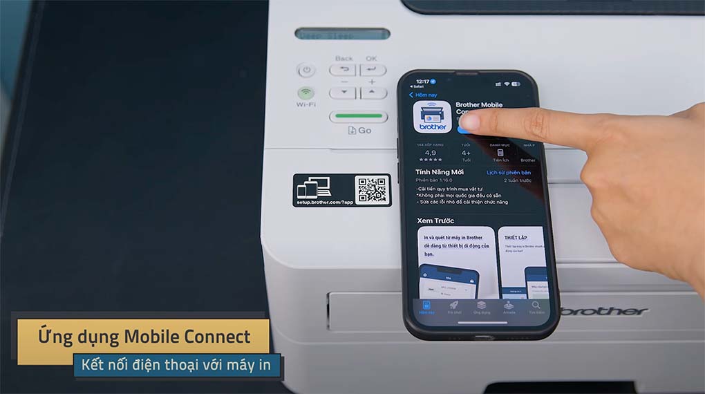 Sử dụng điện thoại để tải xuống ứng dụng "Brother Mobile Connect", theo dõi những hướng dẫn trực tiếp từ app là đã có thể kết nối wifi cho máy in rồi. Từ ứng dụng tải xuống, mình cũng có thể dễ dàng quan sát được tình trạng máy, trạng thái hộp mực nữa.