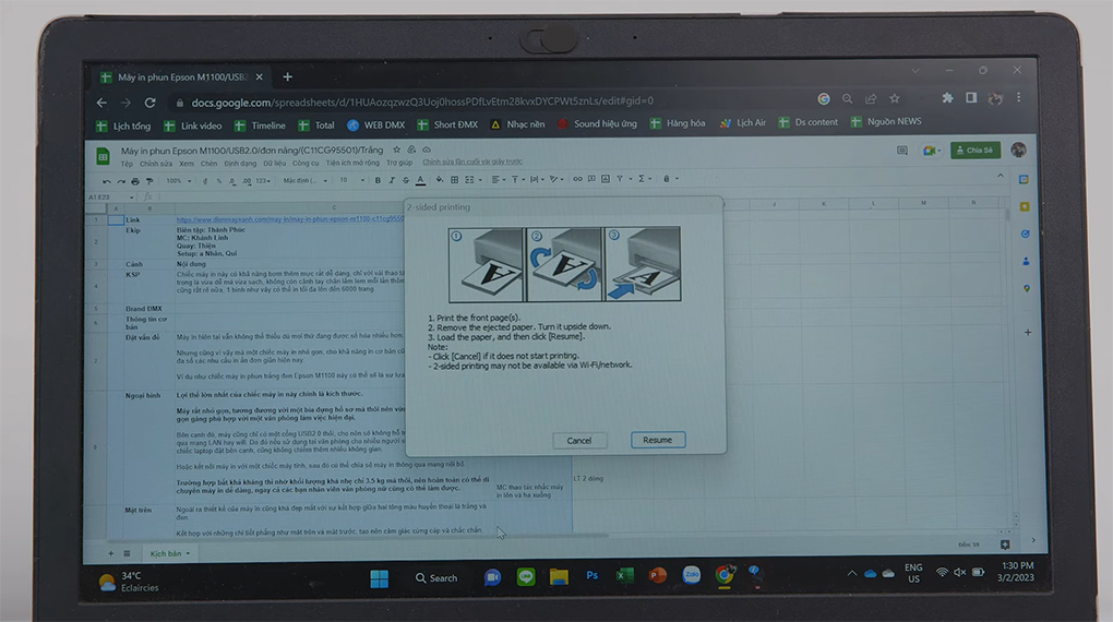 - Máy sẽ in trước một mặt trước, sau khi xong sẽ hiện lên hướng dẫn in tiếp mặt còn lại. Bạn tiến hành xoay đầu giấy lại và tiếp tục đưa vào máy in và bấm Resume.