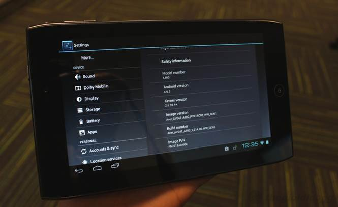Giao diện Android 3.2 trên Iconia Tab A101