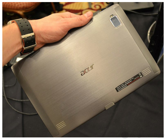 Mặt sau Iconia Tab A500 với camera và loa ngoài
