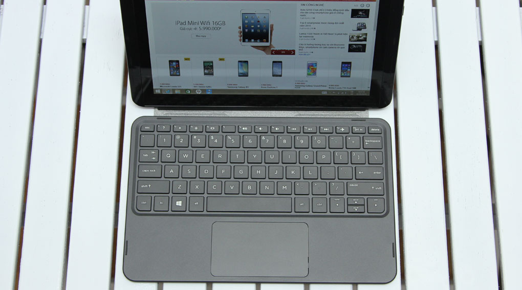 Cạnh dưới cùng của Pavilion X2 10.0hỗ trợ các chấu kết nối với bàn phím được HP thiết kế, bàn phím này được thiết kế tương tự các mẫu laptop 14 inch, nhưng hơi nông nên cần thời gian để làm quen, các phím ấn cho cảm giác tay tốt, thao tác nhanh chóng khi làm quen.