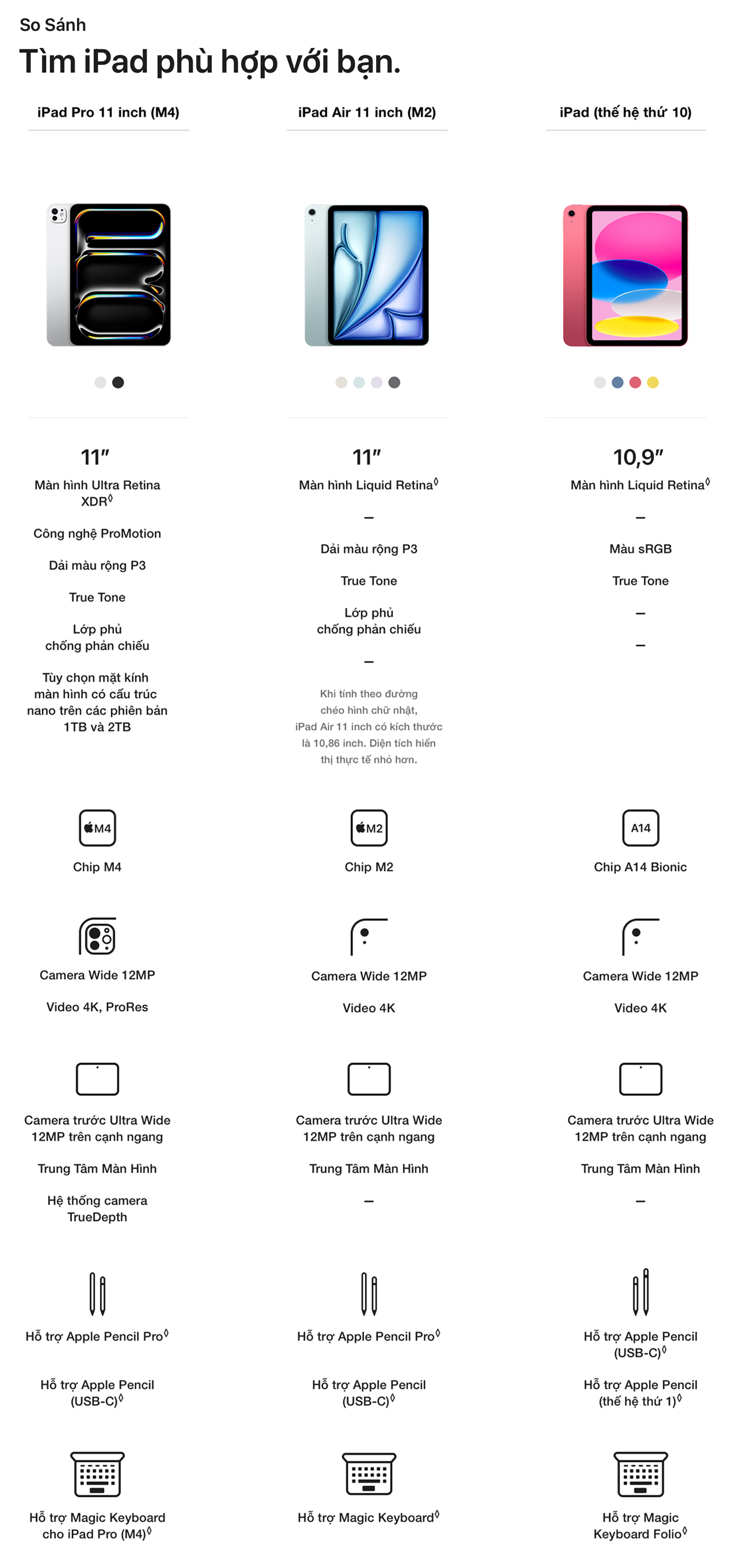Vào tháng 03/2025, Apple giới thiệu iPad Air M3 và iPad A16. Phiên bản iPad Air M3 sử dụng chip M3, cải tiến vượt trội so với M2, mang đến hiệu suất mạnh mẽ và tốc độ xử lý nhanh chóng, giúp người dùng trải nghiệm các tác vụ phức tạp dễ dàng hơn.