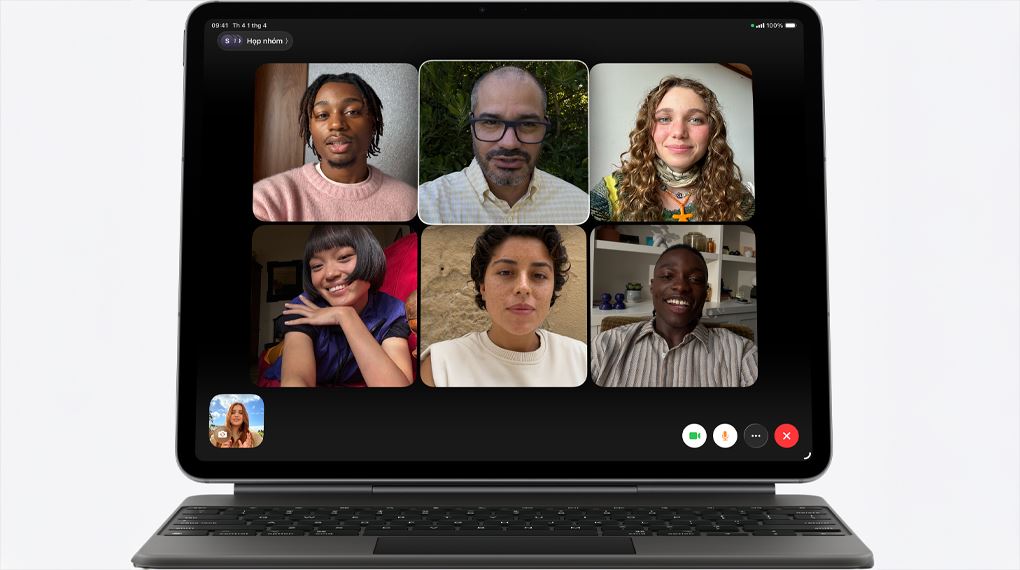 Camera trước 12 MP của iPad Air M4 11 inch 5G 256GB được đặt ở cạnh ngang, vị trí lý tưởng cho các cuộc gọi video. Tính năng Trung Tâm Màn Hình tự động điều chỉnh khung hình để giữ bạn luôn ở vị trí chính giữa khi di chuyển. Điều này giúp trải nghiệm họp trực tuyến hoặc học online trở nên chuyên nghiệp và tự nhiên hơn, giống như có một người quay phim hỗ trợ.