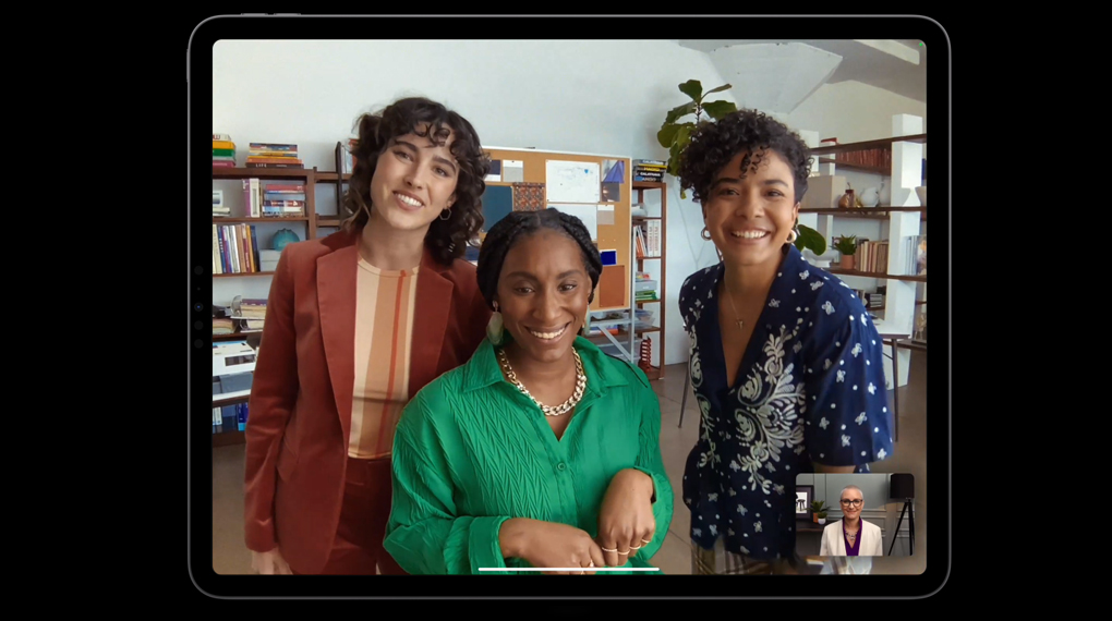 Camera trước góc siêu rộng có độ phân giải 12 MP cung cấp một góc nhìn đến 122 độ, điều này giúp bạn có thể sử dụng được tính năng Center Stage, máy sẽ tự động zoom camera trong lúc người dùng gọi video để điều chỉnh chủ thể luôn luôn nằm trong khung hình. Nếu trong khung hình xuất hiện người thứ hai, iPad sẽ tự động zoom out để bảo đảm người kia cũng nằm trong khung hình.