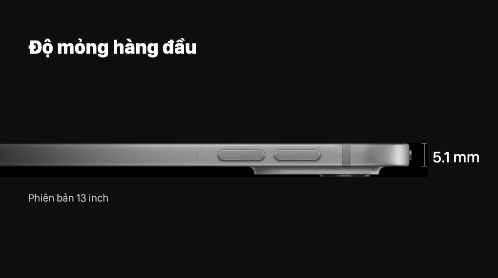 Apple đã tiếp tục chứng tỏ sự tinh tế và hiệu quả vượt trội trong thiết kế của mình. Với độ dày chỉ 5.1 mm, đây là một trong những sản phẩm mỏng nhất của Apple, mang đến sự nhẹ nhàng và tiện dụng tối đa cho người dùng.