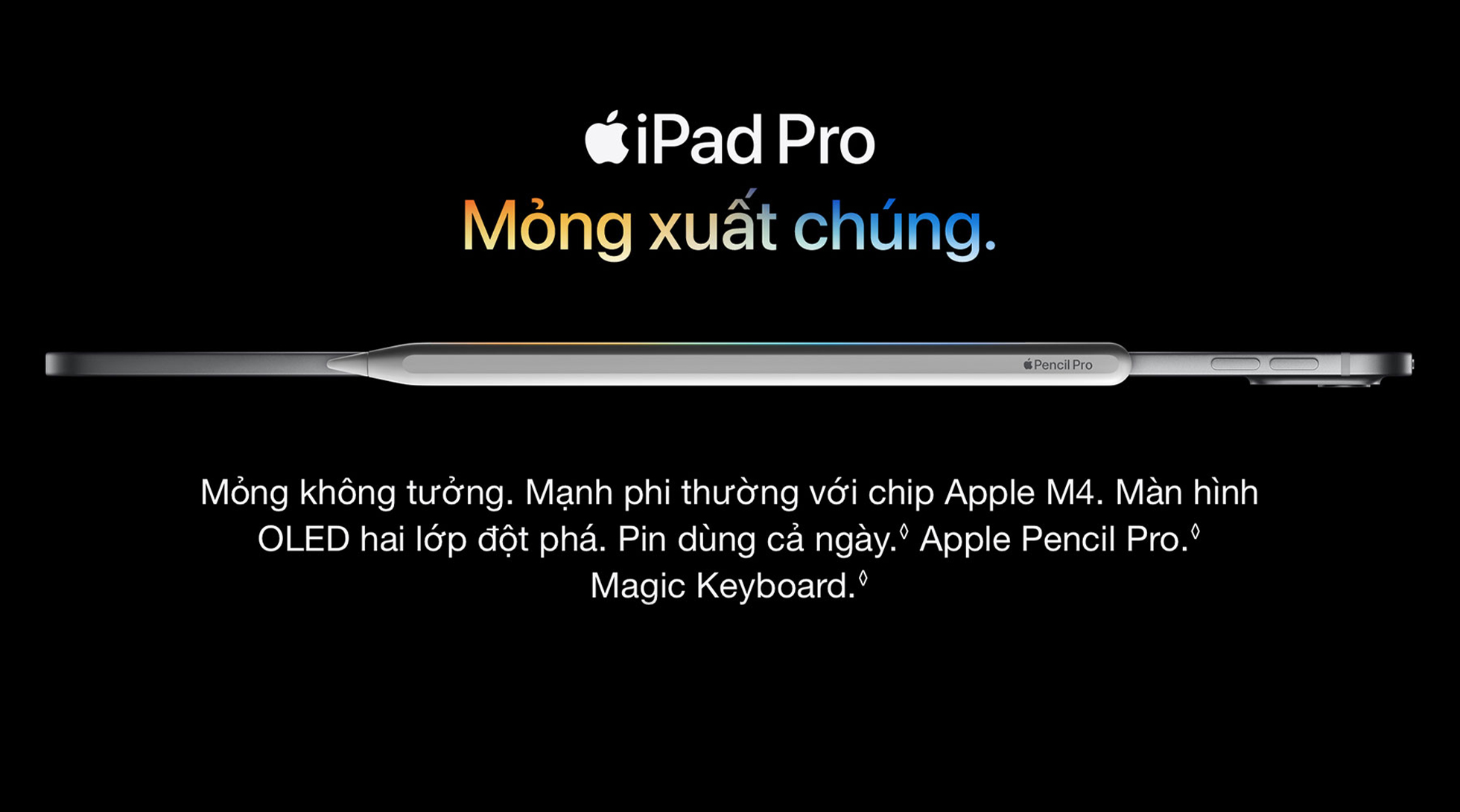 Ngoài ra, iPad Pro M5, iPad Pro M5 11 inch 5G 256GB và iPad Pro M5 13 inch 5G 256GB hứa hẹn nâng tầm trải nghiệm làm việc, học tập và sáng tạo nhờ hiệu năng đột phá từ chip Apple M5.