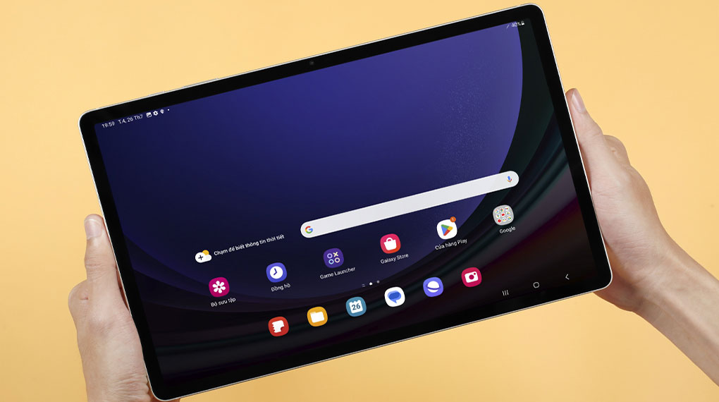 Mục tiêu chính của các dòng máy tính bảng Samsung là mang đến cho người dùng một sản phẩm thon gọn và nhẹ nhàng. Với độ mỏng chỉ 5.7 mm và khối lượng 586 g, Galaxy Tab S9+ tạo điều kiện thuận lợi cho việc cầm nắm và thao tác một cách thoải mái. Máy có thể để gọn vào trong balo mà không chiếm quá nhiều diện tích, từ đây Galaxy Tab S9+ có thể đồng hành cùng bạn đến bất cứ đâu.