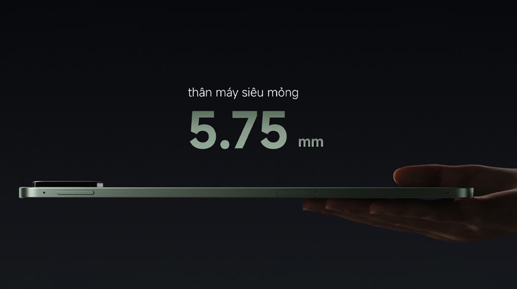 Khung viền nguyên khối toàn kim loại của Xiaomi Pad 8 Pro mang lại sự nhẹ nhàng nhưng vẫn đảm bảo độ chắc chắn. Với độ dày chỉ 5.75 mm và khối lượng 485g, thiết bị cho phép người dùng cầm nắm thoải mái trong thời gian dài. Kích thước này giúp máy dễ dàng nằm gọn trong túi xách để mang theo hằng ngày mà không gây vướng víu.