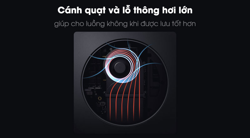 Apple đã khéo léo thiết kế hệ thống tản nhiệt cực tối ưu trên chiếc máy tính nhỏ gọn này với quạt lớn hơn, lỗ thông hơi mở rộng và phần nguồn được thiết kế lại. Luồng không khí lưu thông tăng gấp đôi.