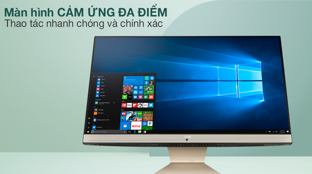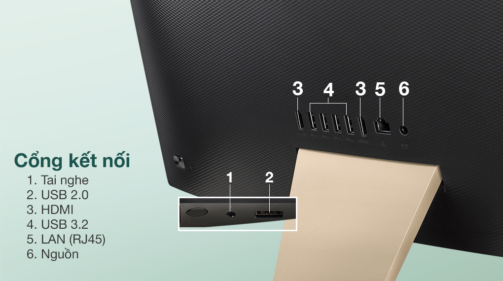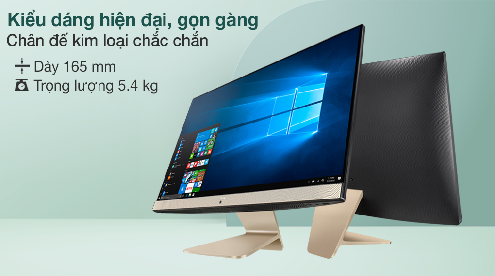 Chiếc Asus AIO này sở hữu trọng lượng 5.4 kg với gam màu đen mạnh mẽ, cho phép bạn dễ dàng lắp đặt, thay đổi vị trí ở mọi không gian trên bàn làm việc, bàn học mà không lo cồng kềnh, chiếm quá nhiều diện tích.
