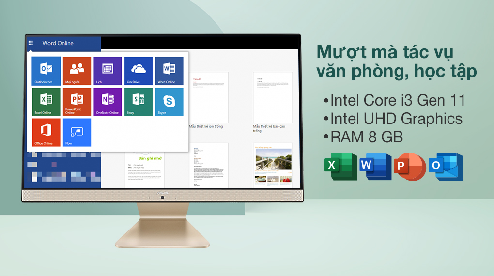 Được trang bị bộ vi xử lý Intel Core i3 Tiger Lake 1115G4 với tốc độ CPU 3.0 GHz và ép xung lên đến 4.1 GHz, chiếc máy tính nguyên bộ này hỗ trợ thao tác các tác vụ văn phòng cùng Word, Excel,... một cách hiệu quả hơn nhất có thể.