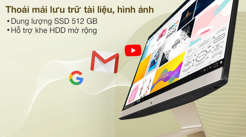 Ổ cứng SSD 512 GB NVMe PCIe cho không gian lưu trữ tài liệu tốt và phản hồi nhanh chóng các thao tác phức tạp, thời gian khởi động máy, mở ứng dụng cũng được rút ngắn. Đồng thời, máy cũng hỗ trợ khe cắm HDD SATA cho bạn mở rộng thêm không gian lưu trữ khi cần.