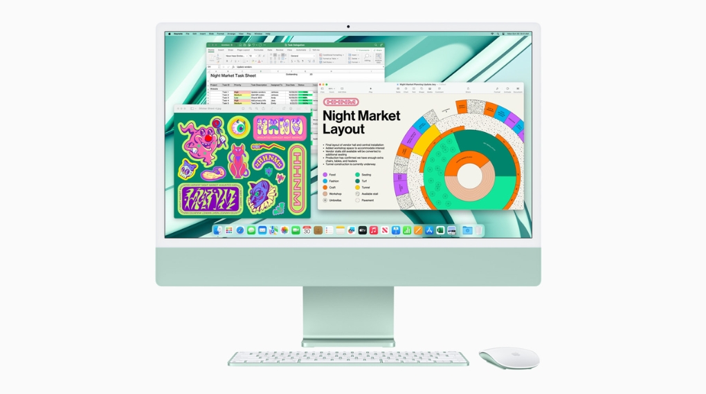 Bên cạnh đó, chiếc iMac M3 cũng được Apple cung cấp một bộ chuột bàn phím đẹp mắt, tạo nên một hệ thống máy tính toàn diện và tiện lợi.