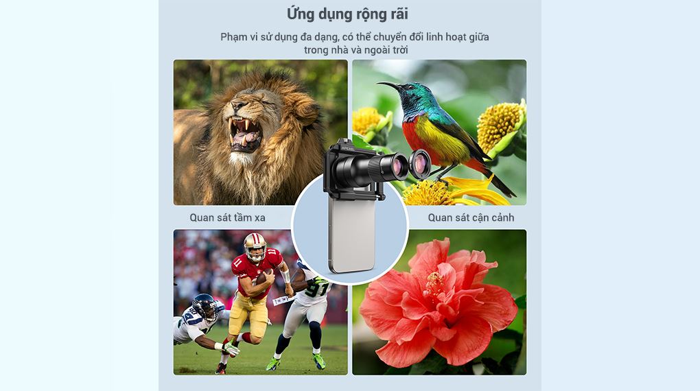 Ngoài chức năng chụp ảnh, ống kính Apexel APL-TM6 còn có thể sử dụng cho mục đích quan sát cầm tay. Khi kết hợp ống tele 6X với chụp mắt đi kèm, người dùng có thể quan sát trực tiếp các vật thể ở khoảng cách xa bằng mắt thường, tương tự như một ống nhòm mini.