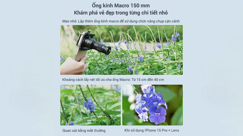 Việc tách riêng ống macro giúp tối ưu quang học cho khoảng lấy nét gần, hạn chế méo hình và mất chi tiết. Nhờ đó, ảnh macro có độ nét cao tại vùng lấy nét, tạo cảm giác chiều sâu rõ ràng và tăng tính sáng tạo cho nhiếp ảnh di động.