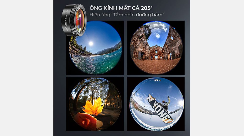 Ống kính mắt cá 205° mang đến hiệu ứng cong đặc trưng, tạo cảm giác không gian được kéo giãn mạnh mẽ. Đây là lựa chọn phù hợp cho những bức ảnh mang tính sáng tạo cao, chụp cảnh đường phố, thể thao hoặc các góc nhìn độc đáo mang tính nghệ thuật.