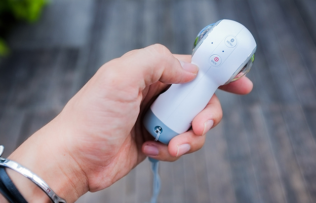 Cụm tripod trên chiếc Gear 360 2016 thế hệ cũ đã được loại bỏ và thay vào đó là một trụ cầm tay nhỏ gọn và chắc chắn.