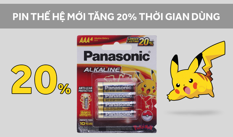 pin sử dụng êm, thiết kế chống rỉ và chảy nước, Pin AAA 4 viên Alkaline Panasonic LR03T/4BPKV <br />đáng tin và được ưa chuộng