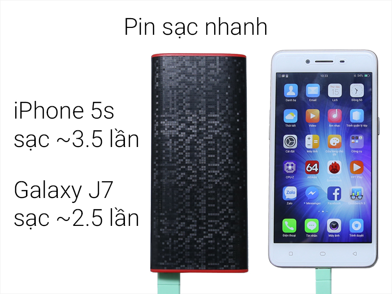Sạc được đầy pin cho điện thoại và máy tính bảng có dung lượng dưới 6.500 mAh.