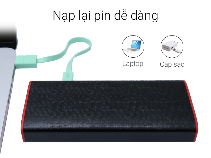 Bạn có thể dùng adapter sạc hay dây cáp nối với laptop để sạc cho pin.