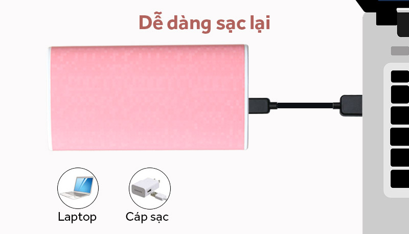 Bạn có thể dùng Adapter sạc hay dây cáp nối với Laptop để sạc cho pin.