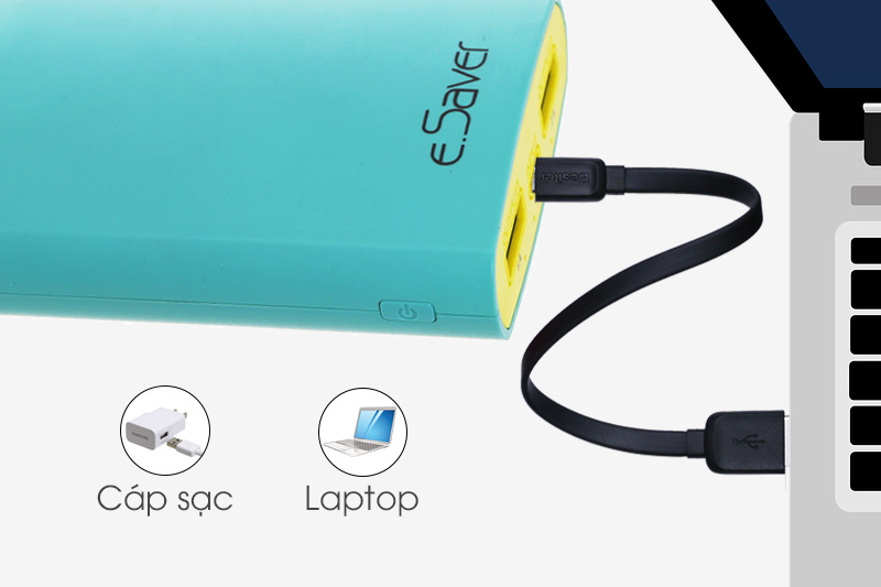 Bạn có thể dùng adapter sạc hay dây cáp nối với laptop để sạc cho pin.
