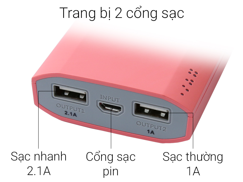 Mẹo: Bạn có thể sạc nhanh cho thiết bị bằng cách cắm sạc cổng 2.1A.