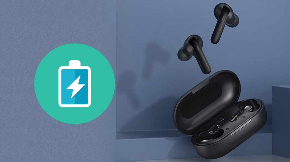 Khi cần nạp pin tai nghe Haylou, thời gian sạc là 1.5 giờ trong khi hộp sạc cần đến 2.5 giờ, nạp pin qua cổng Type-C thông dụng nằm ở mặt sau của hộp sạc.