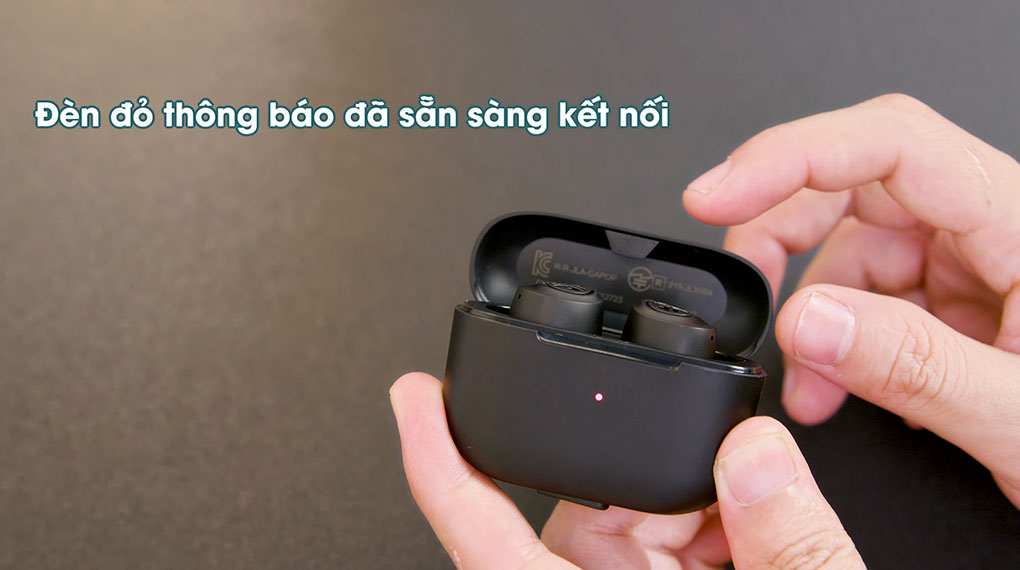 Mở tai nghe ra phần thân sẽ có màu đỏ, cái này là thông báo tai nghe đã sẵn sàng kết nối với thiết bị.