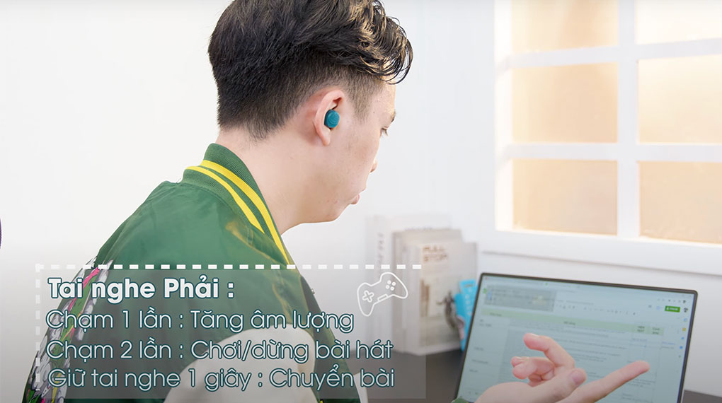 Các thao tác thực hiện cảm ứng chạm theo cảm nhận của mình là độ nhạy vừa đủ trong tầm giá. Bên cạnh đó, Jlab rất quan tâm đến người dùng khi kèm sổ hướng dẫn sử dụng với phần chi tiết từng hình về các thao tác chạm khi sử dụng tai nghe.