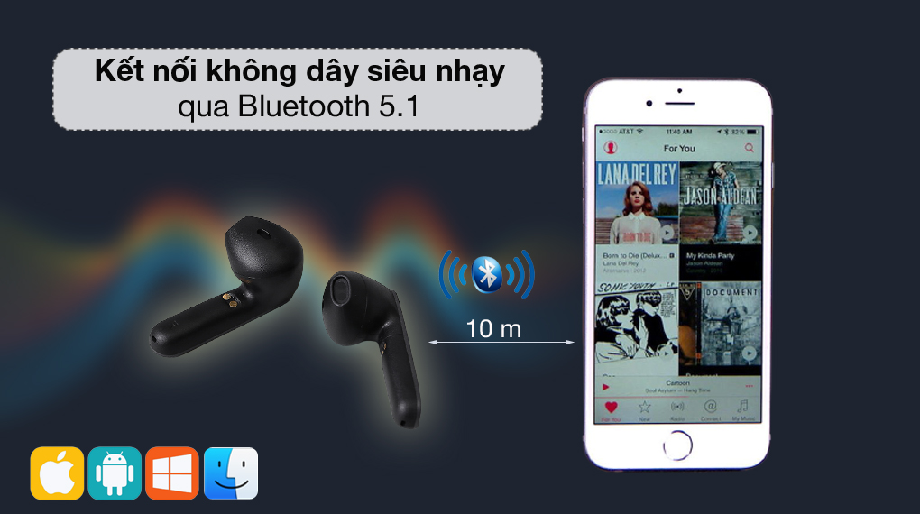Tai nghe Bluetooth tương thích tốt thiết bị có hệ điều hành Android, iOS (iPhone, iPad), Windows, macOS (Macbook, iMac).